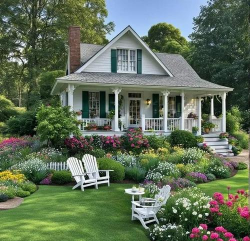 强调与自然的亲密关系,常以大面积草坪、花卉和散落的小品(如铁艺桌椅、日晷)营造出“如诗如画的田园意境”。
